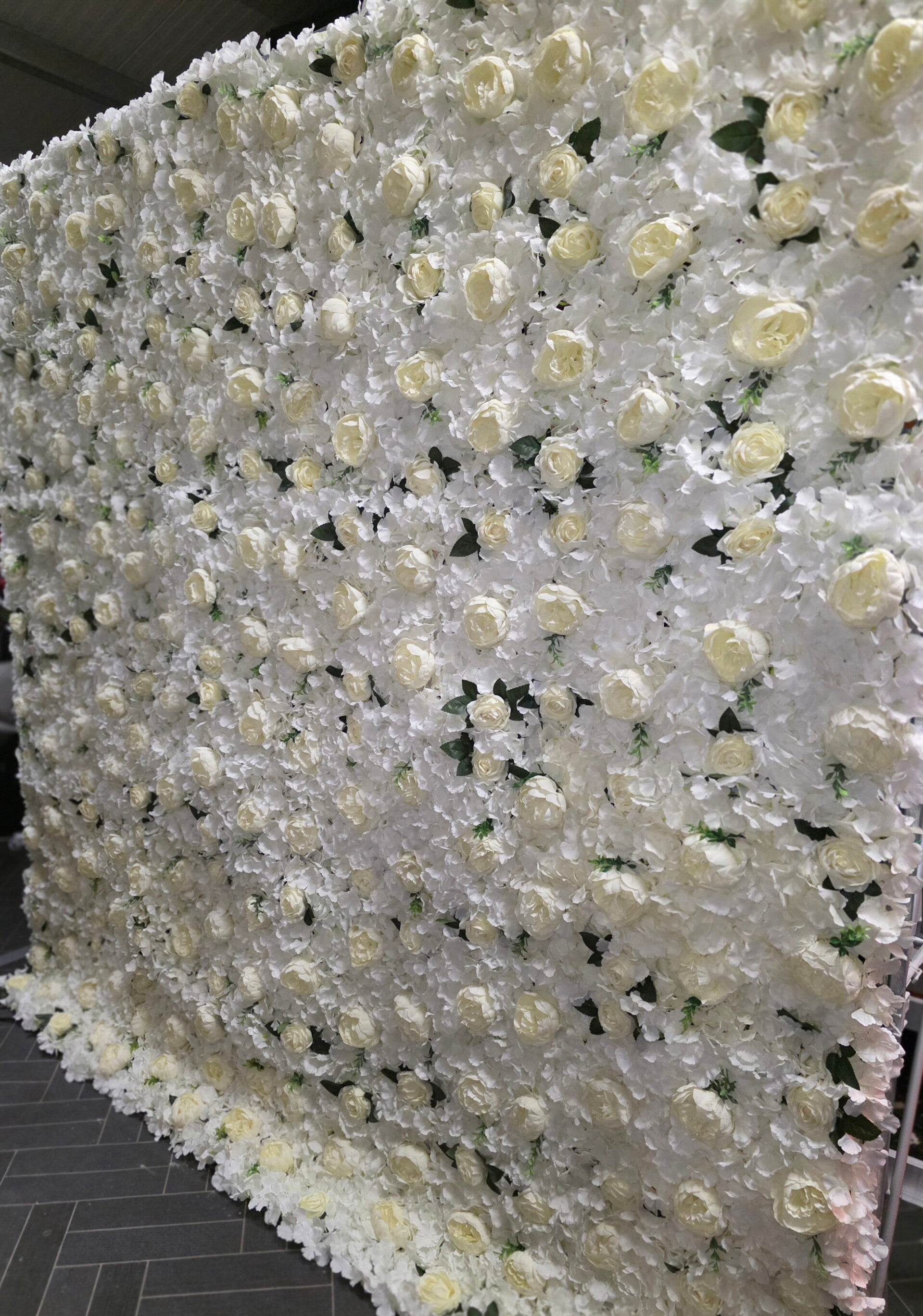 The soft white floral design gives venues a bright and stylish finish while creating a professional backdrop for photography.