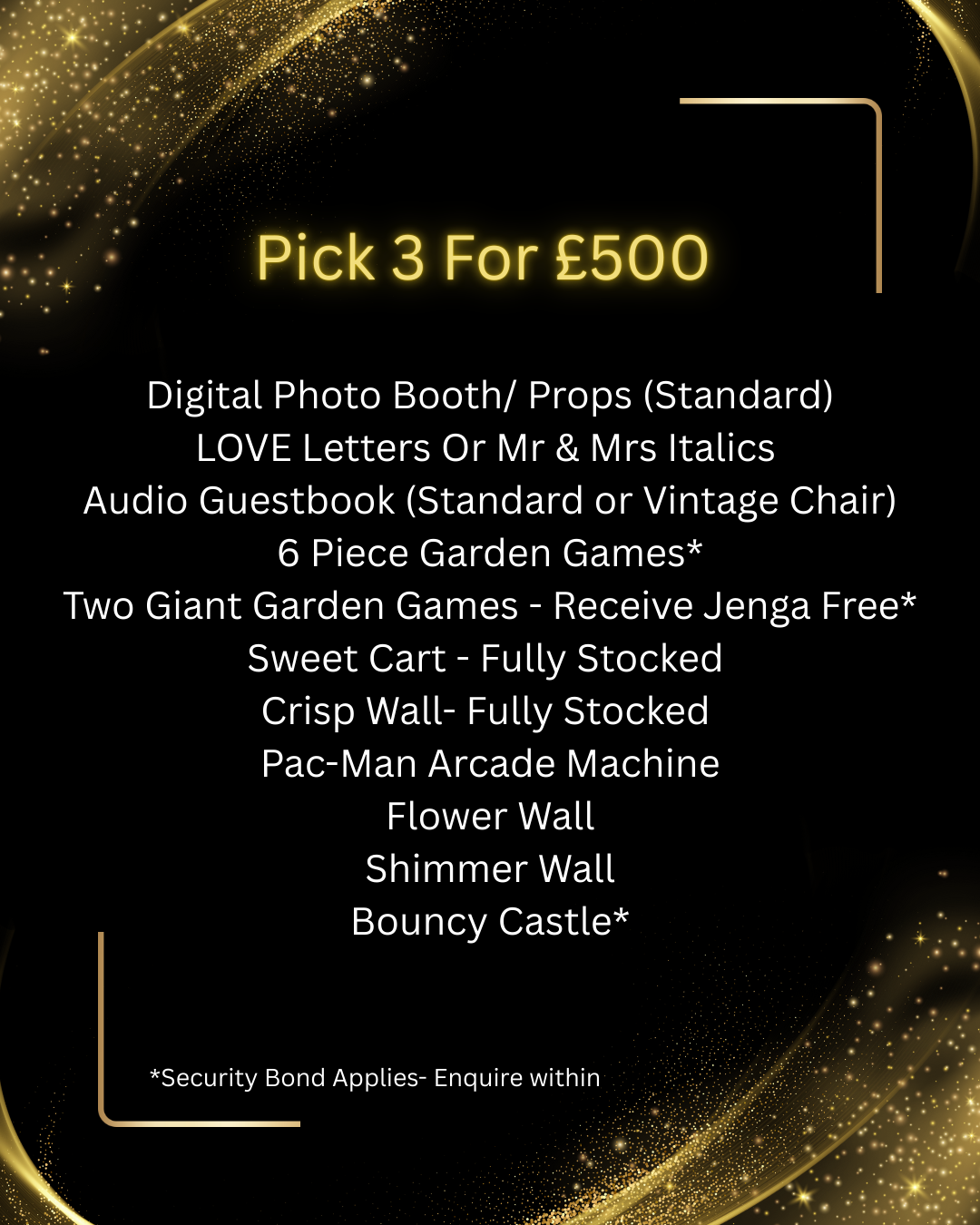 Pick ANY 3 of our premium event extras for ONLY £500 — yes, really!